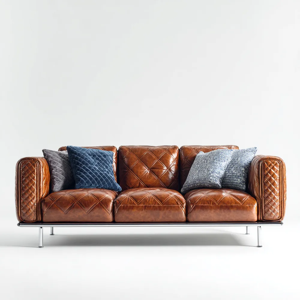 Matériaux et FabricationFabriqué en cuir de haute qualité dans une teinte Marron chaude, ce canapé est conçu pour durer tout en offrant un confort optimal. Les pieds en métal ajoutent une touche moderne.